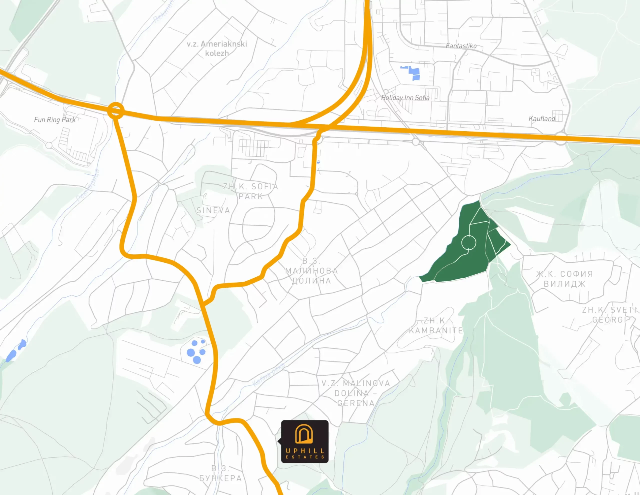 Проектът се намира във в.з. Малинова Долина-Герена, като през последните години зоната се обособява като една от най-търсените локации за живот в столицата поради удобния достъп, чудесните гледки към града и планината, ниската застроеност, зелените площи и близостта до града чрез ул. Бистришко шосе и Околовръстен път. Съвсем наблизо се намират и множество удобства като Sofia Ring Mall, IKEA, Business Park Sofia, Garitage Park, големи хипермаркети, детски градини, училища и други.